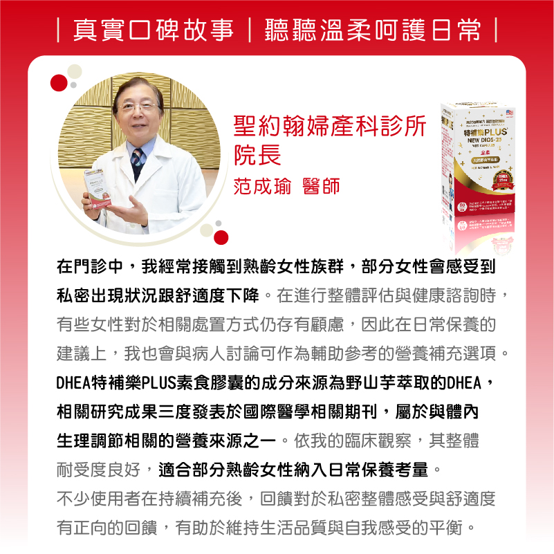 我會向部分符合需求的患者介紹美國進口的DHEA特補樂PLUS素食膠囊。